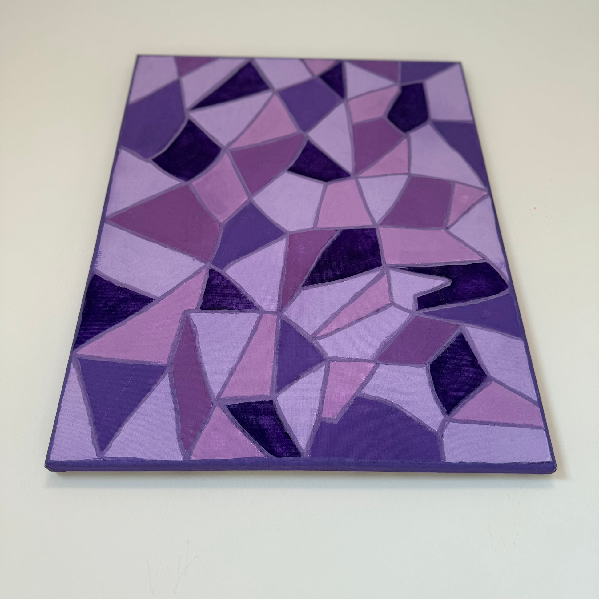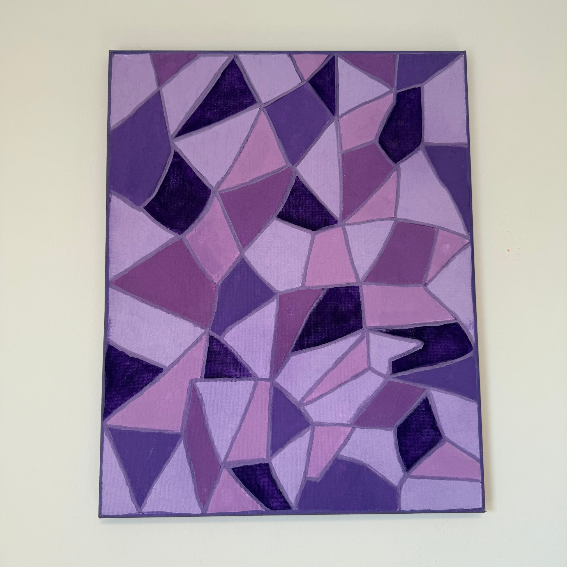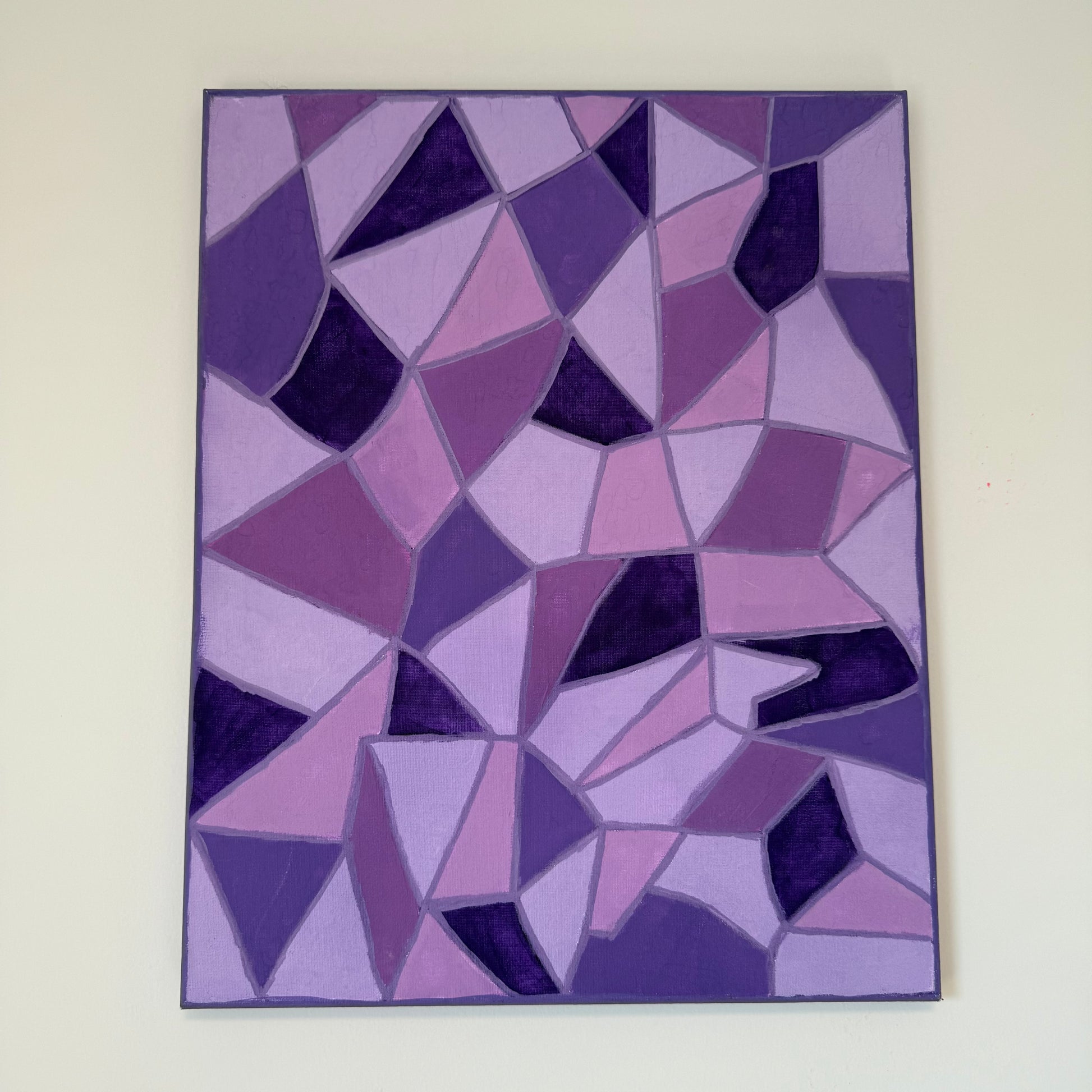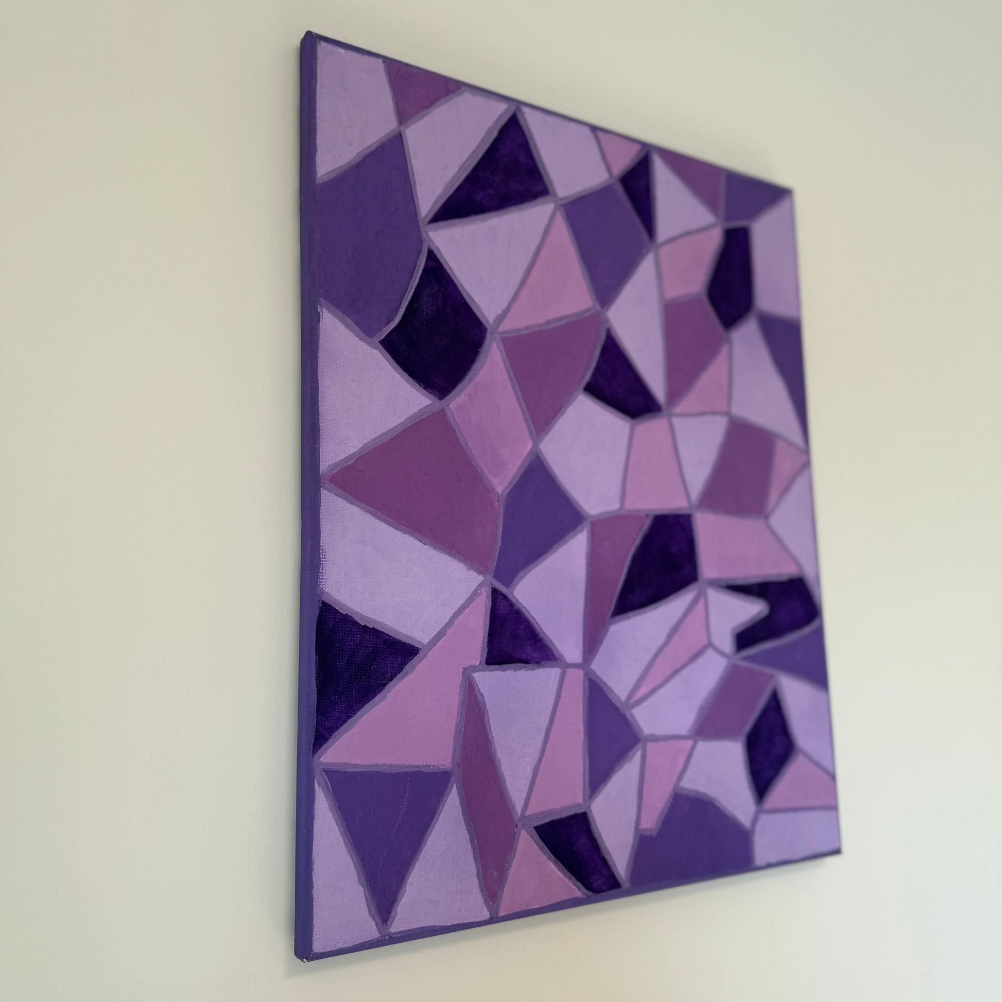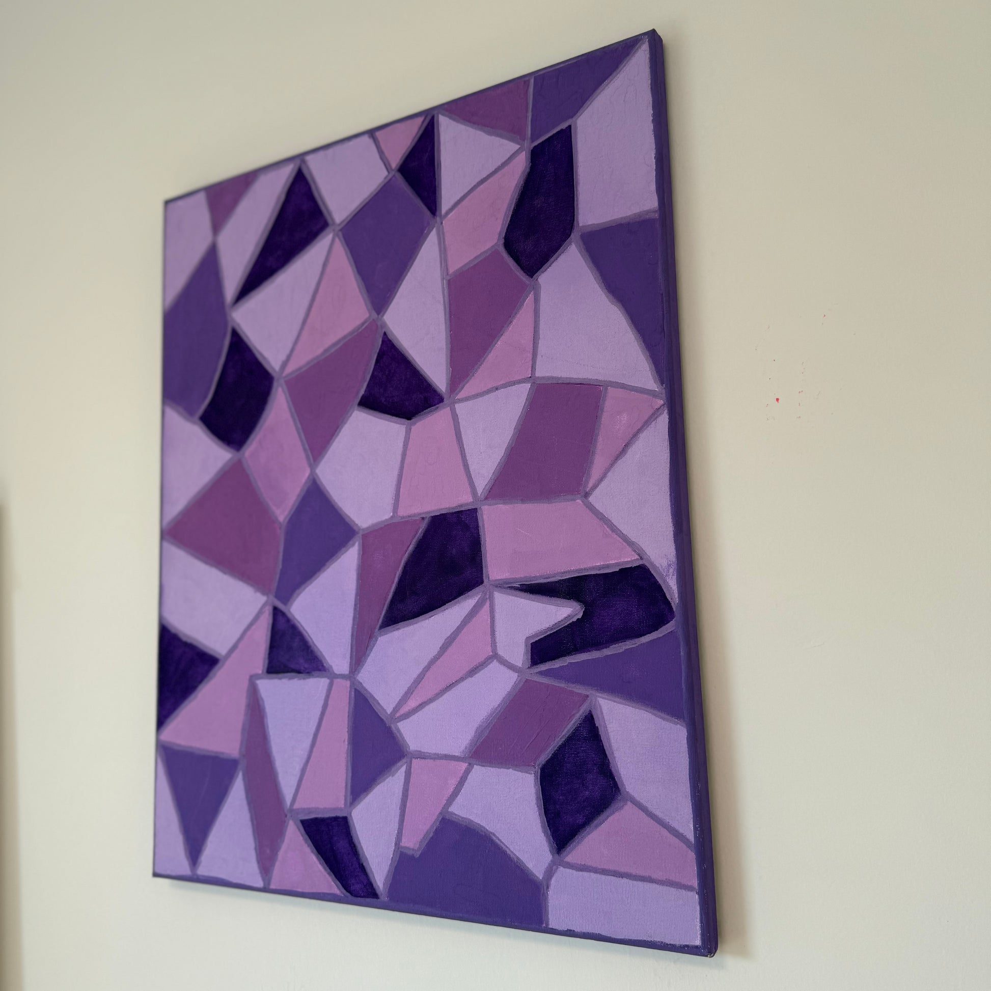 Hand-mixed purples form fractured shapes that seem to be breaking apart yet still hold together. Obstruction is about those moments when it feels like everything is falling apart — and realizing that even in the cracks, there’s structure, beauty, and the possibility of something new emerging.